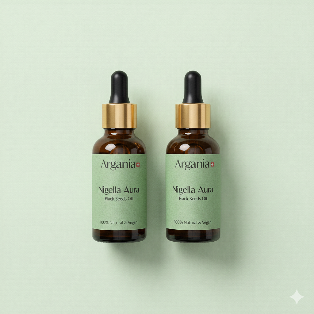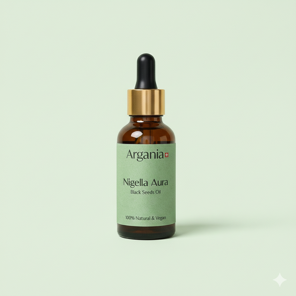 Nigella Aura® ist ein 100 % reines, kaltgepresstes Öl, das extrem reich an essentiellen Fettsäuren, natürlichem Vitamin E und Thymoquinon ist, einem Wirkstoff, der für seine entzündungshemmenden, antibakteriellen und wundheilenden Eigenschaften bekannt ist.